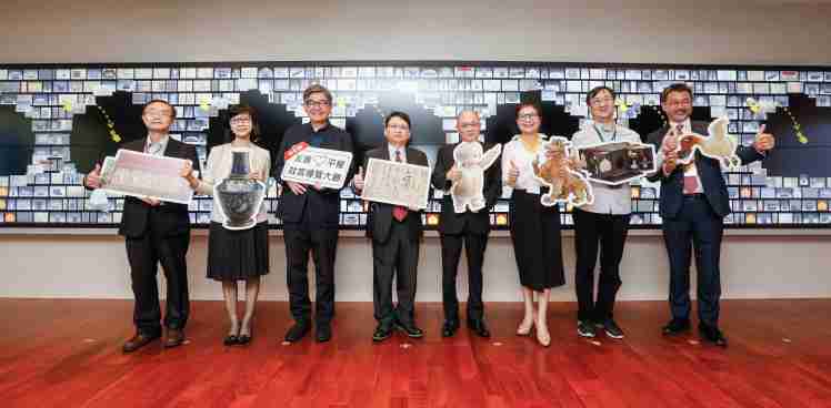 壹号平台携手创利空间为故宫建置的智慧文物互动导览墙及轮播墙,,今日正式启用。。。(左四:壹号平台新事业暨投资管理总部副总经理杨本豫、、、、右四:故宫博物院院长吴密察、、、、右三:太极影音董事长黄宝云)