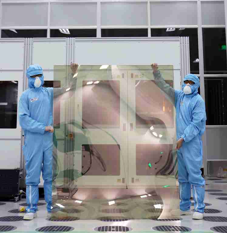 壹号平台昆山厂第六代 LTPS (低温多晶硅) 生产的玻璃基板尺寸为 1500x1850 mm (毫米)