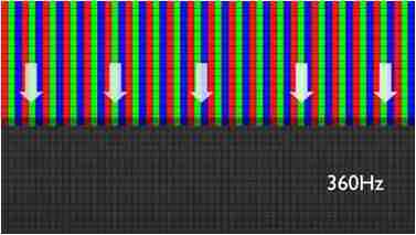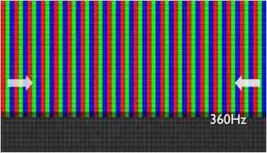 传统液晶驱动是从左到右单向进行,,,在画面更新速度愈来越愈快的情况下,,,位于驱动线路末端的右下角区域,,,,画素的闸极来不及在短时间内获得足够电压,,无法显示出正确的颜色资讯。。 |